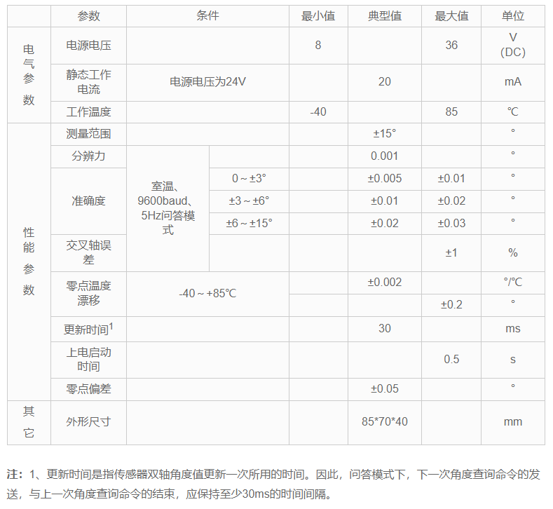 產品量程±15°,采用鋁合金外殼,防護等級IP67。精度可達0.001°