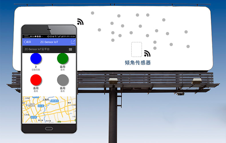 為了提高城市安全管理水平,方便監(jiān)管單位快速掌握突發(fā)情況,提出應用傳感器技術進行大型廣告牌匾傾角監(jiān)測的監(jiān)管方式,直川科技服務于各類市政工程、道路、交通單位機構,并設計了基于傾角傳感器的監(jiān)測系統(tǒng)。系統(tǒng)由前端信息采集裝置和后臺信息處理與展示部分組成,其型號為ZCT330E-SWP-N。其中,利用前端信息采集裝置中的MEMS傾角傳感器每隔一定時間間隔采集大型廣告牌匾的傾角數(shù)據(jù),并將監(jiān)測數(shù)據(jù)通過GSM無線通信方式傳送給后臺服務器,最終由服務器完成數(shù)據(jù)解析、數(shù)據(jù)入庫、監(jiān)測和預警及Web界面展示。系統(tǒng)具有全天候、實時性的特點,在提升大型廣告牌匾監(jiān)管效率的同時大大節(jié)約了人力成本,是物聯(lián)網(wǎng)技術應用于”智慧城市”領域的一次有益嘗試。